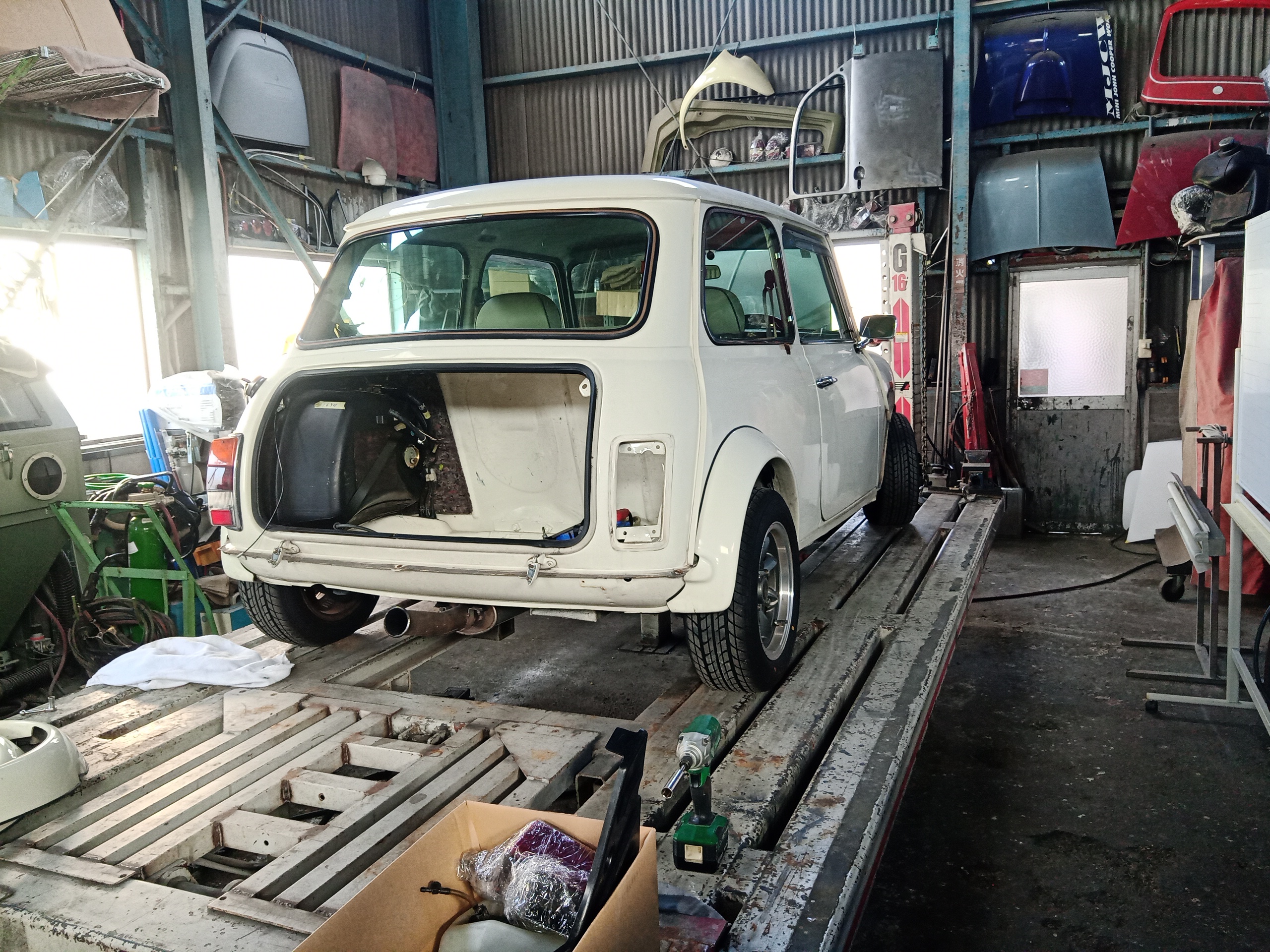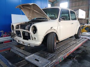 2026年がスタートしました あけましておめでとうございます。 5日から仕事始めてますので投稿が遅くなってしまいました。 「良いご縁を大切にしながら、共に歩んでまいりたい」こんな気持ちで頑張りたいと思います。 今年の仕事始めは、やはりミニから 完成目の前だったミニを仕上げました。 エンジンオーバーホール待ちなので、ボンネットは外したままにしてます。