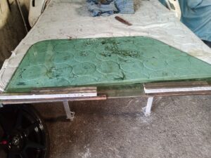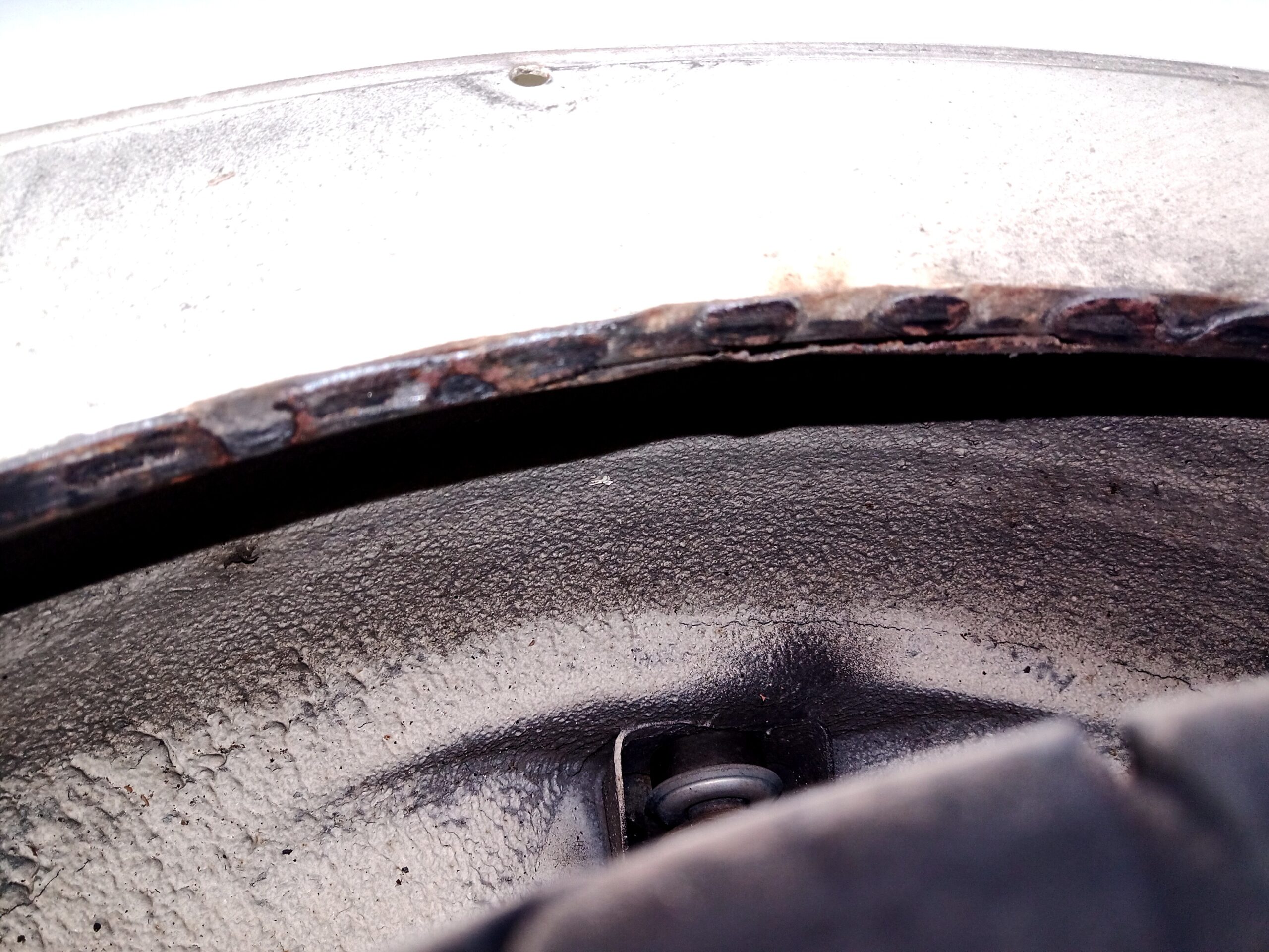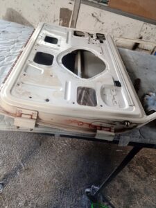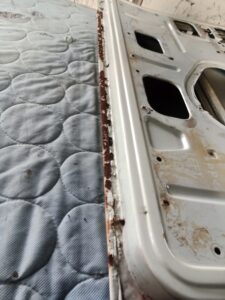 ミニの外装オールペン こちらのミニは去年預かっている車両です。 見た目は痛みが少なそうですが、定番の錆は出てますので、 それなりに作業はありそう。 去年受け付けた車両(ワーゲンバス、ポルシェ912)も進める予定です。 リアタイヤ擦って鉄板がなくなってる部分も。 ドアはこんな感じ。 左ドアガラスのスライドレールが終わりそうだったので外して防錆しました。